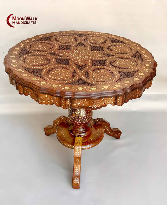 30" Couchtisch-Set aus Holz mit 4 Hockern | Handgefertigte dekorative Intarsienarbeit | Traditionelle indische Möbel | Wohnzimmertisch im Vintage-Stil