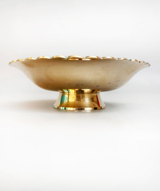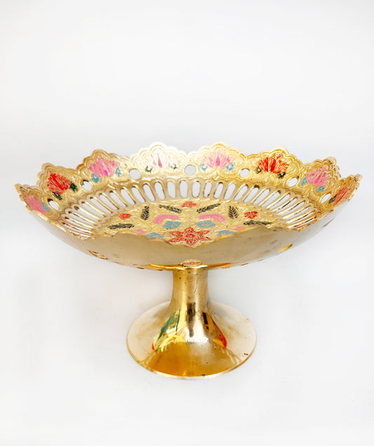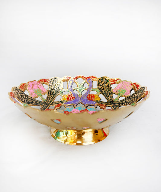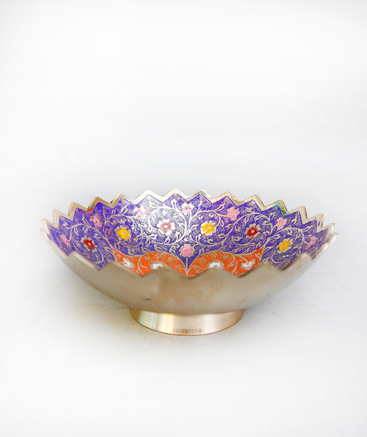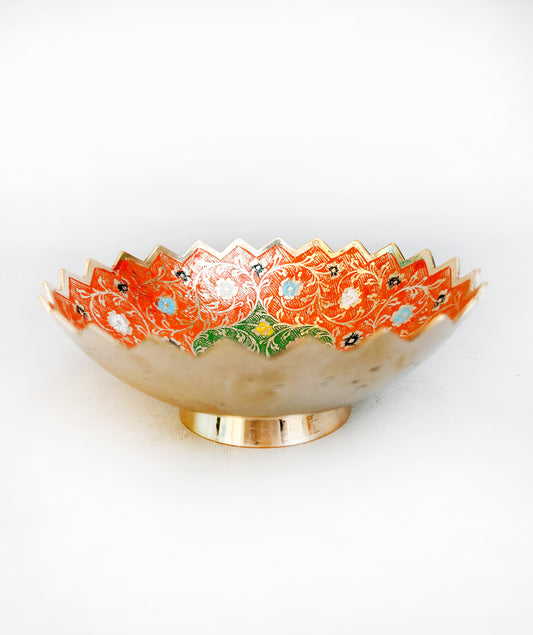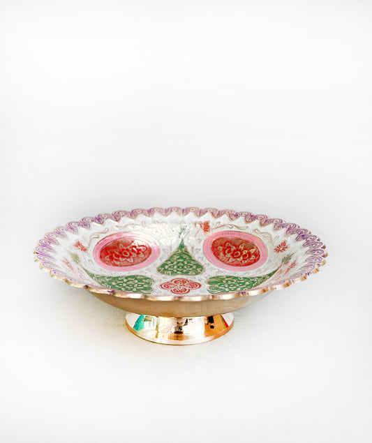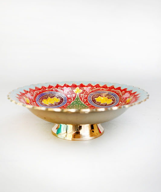 K03 | Handgefertigte Schale aus Messing | Emaille-Blumendesign | Dekoratives Serviertablett | Pooja Thali | Festliche Wohndekoration | Indische Vintage-Kunst