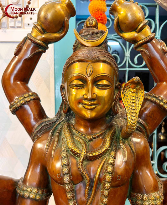 Göttliche sechsarmige Statue des Herrn Shiva aus Messing – Shashtabhujadhari-Form für spirituelle Erleuchtung, Code: ROH139
