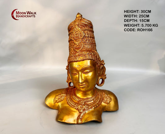 Messingbüste der Göttin Gauri Ma – Indische Skulptur im Chola-Stil, Gesicht von Parwati Maa, Code: ROH166