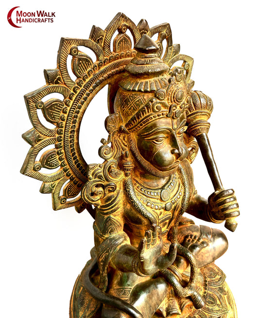 Göttlicher Segen: Sitzende Bronzestatue des Herrn Hanuman, CODE ROH178